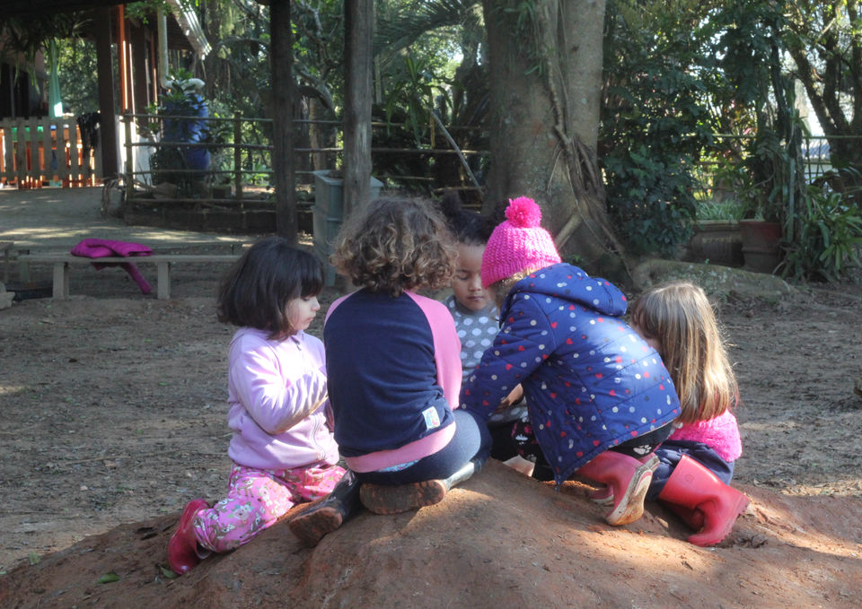 Dia a dia repleto de livre brincar em um ambiente de confiança e experiências corporais diversas que apoiam o florescer das crianças.